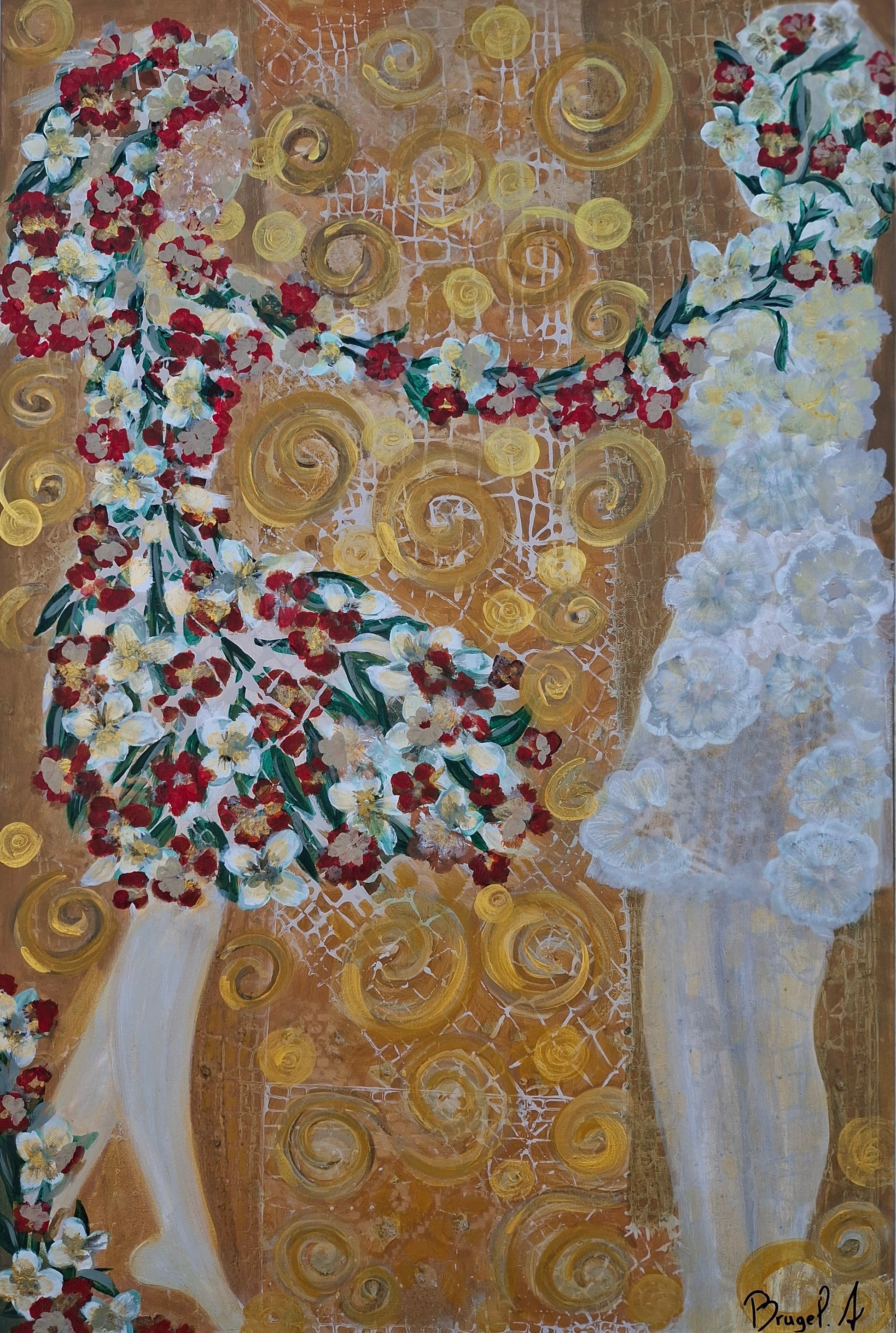 A woman lifts another woman — not with muscles, but with courage. Not with hands, but with words and presence. This work is an ode to female strength that does not compete, but connects. One woman stands firmly, layered in experience, the other becomes lighter, carried by trust.