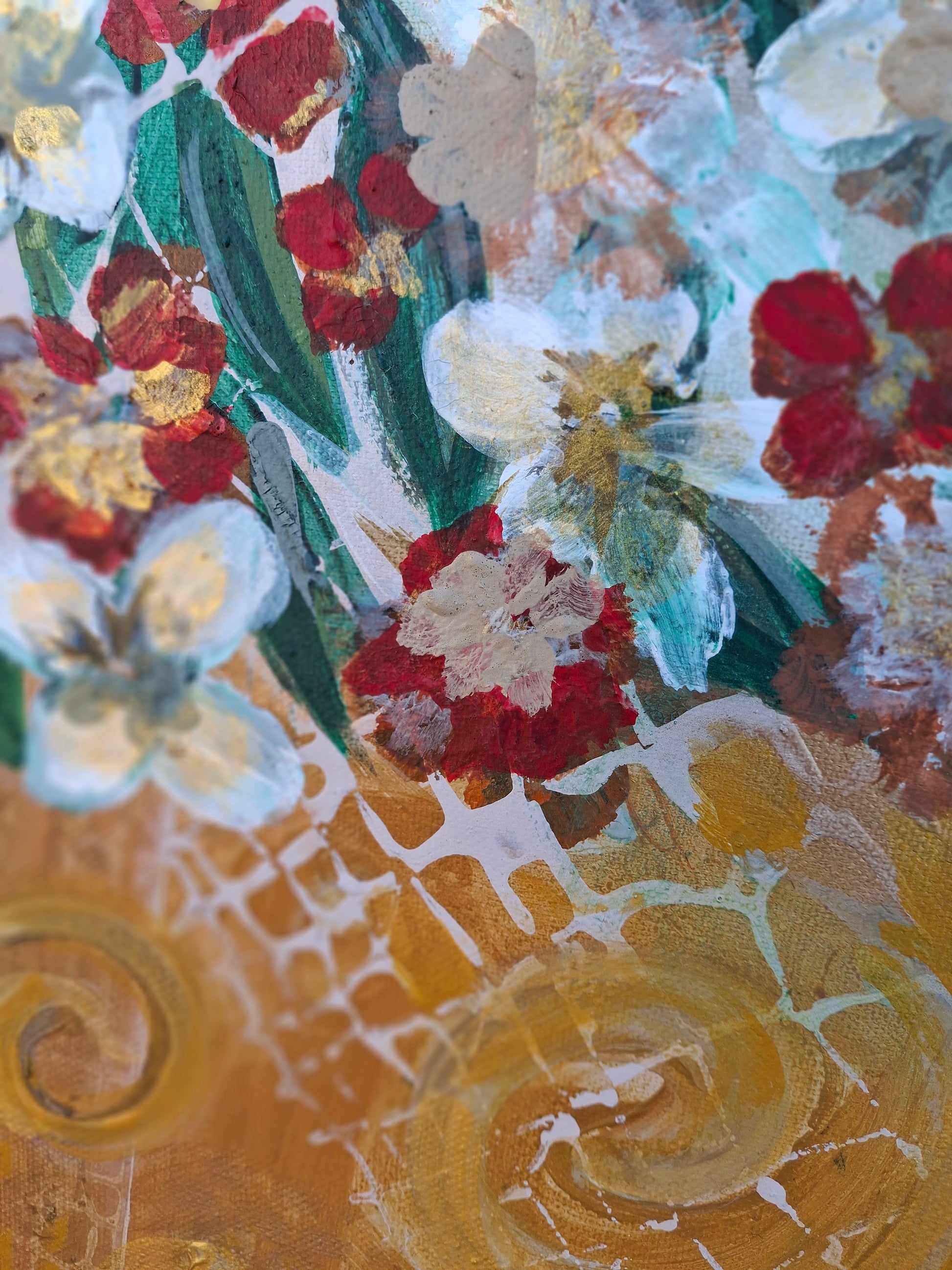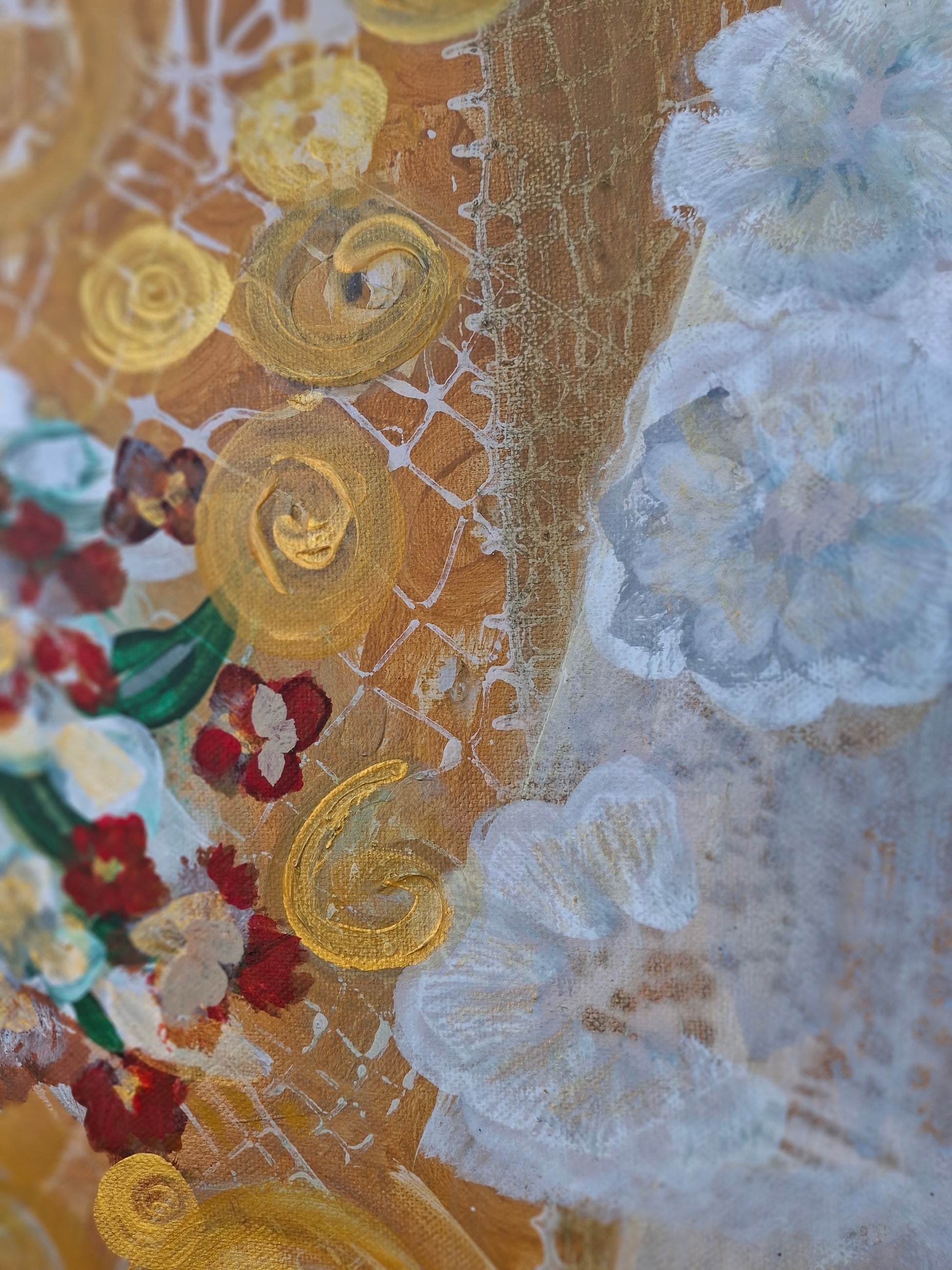 Layer over layer, acrylic, spray paint, stencil — reflects how we build each other up: intuitive, imperfect, but with intention. Each layer contributes to the whole, just as every act of support lays a foundation.